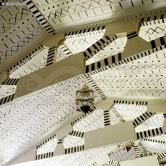 London garden house with theatrical black and white surface decoration. African primitive meets graffitti. Interior design by Sue Timney