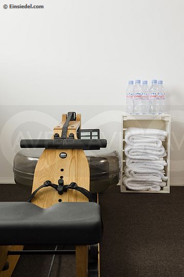 Rowing machine and exercise area. Interior design by Rolf Sachs