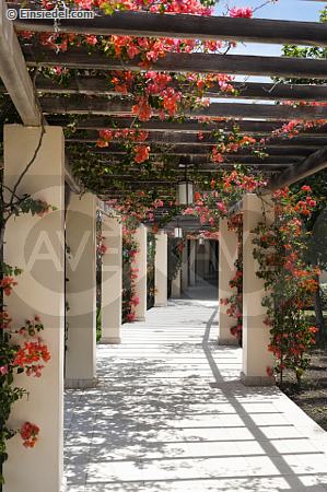 "Flowers on pergola at Tamarind Cove, Antigua"