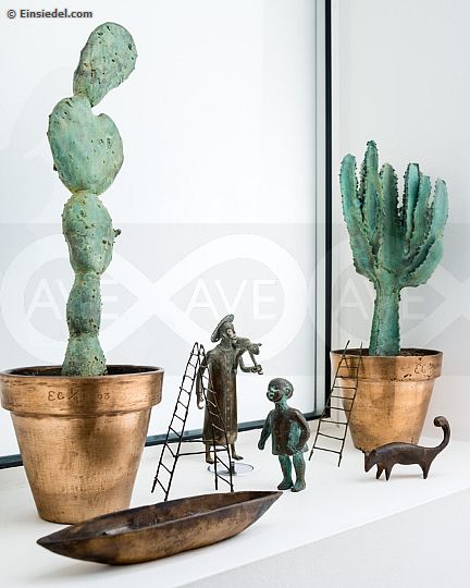 Pair of bronze cacti by sculptor Edward Cronshaw